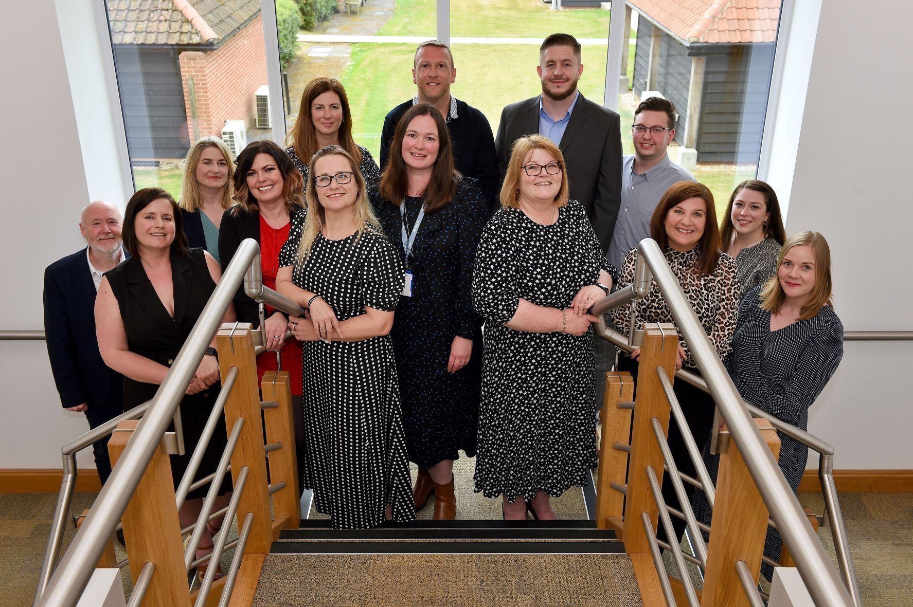 Working in Ashtons’ Bury St Edmunds office are Ross Blows (pictured, fourth from the right) in the Court of Protection team, Zoe Byford (pictured, centre right), Executive Assistant to the CEO and COO, Amanda Cavanagh (pictured, fourth from the right) in Clinical Negligence, Victoria Cole (pictured, far right) from the family team, Naomi Everett (pictured, third from the right) from residential property, Sophie Hearle from French property and Jacqui O’Neill (pictured, centre left) from the firm’s Facilities and Admin team.